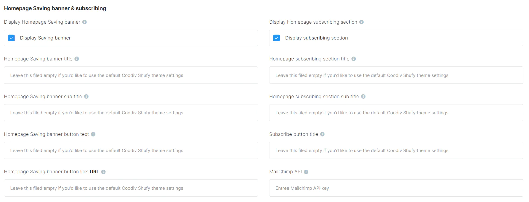 7. Marketconnect Bannaers These fields are for displaying ShufyTheme MarketConnect banners