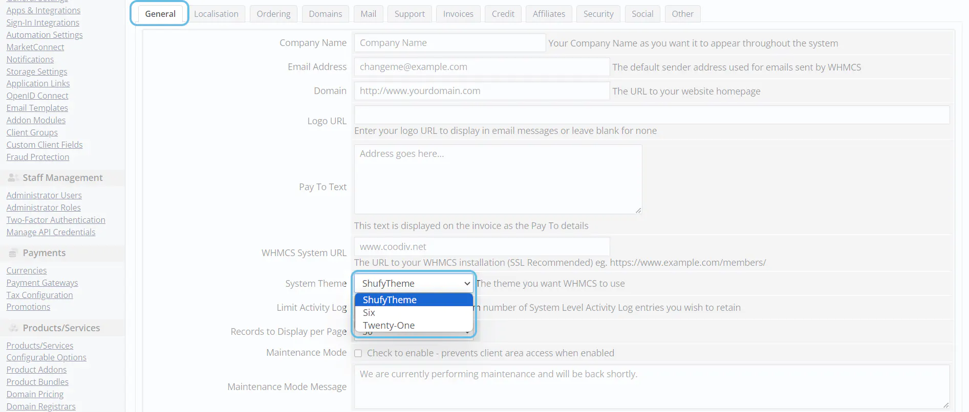 ShufyTheme WHMCS Documentation file